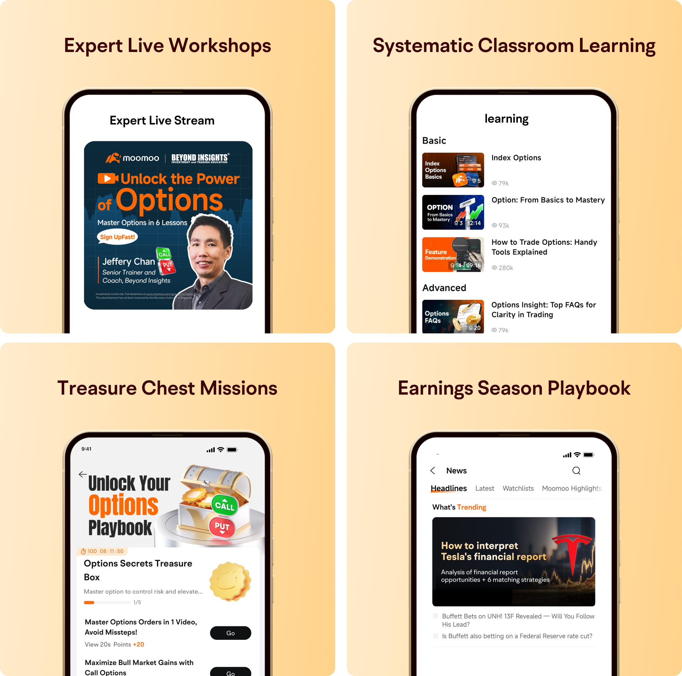 Moomoo equips you with comprehensive learning resources to systematically master options — from theory to execution.